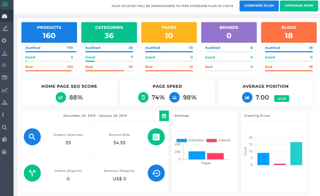 - Its core features, editor, audits, scorecard, bulk editing, and integrations, simplify optimization for Shopify stores.