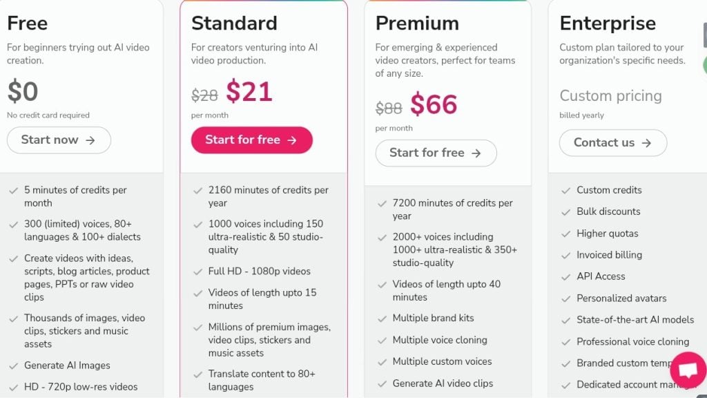 The Standard Plan represents the entry point for most serious content creators, offering watermark-free videos, access to the complete voice library, higher resolution outputs, and more generous usage quotas. This tier typically provides sufficient capabilities for individual creators, small businesses, and those producing a moderate volume of content regularly.