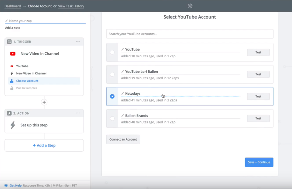 Next, choose which YouTube channel Zapier should watch if you have multiple channels. Click “Test Trigger” to make sure Zapier can see your videos. Zapier will show you your most recent videos to prove the connection works.
