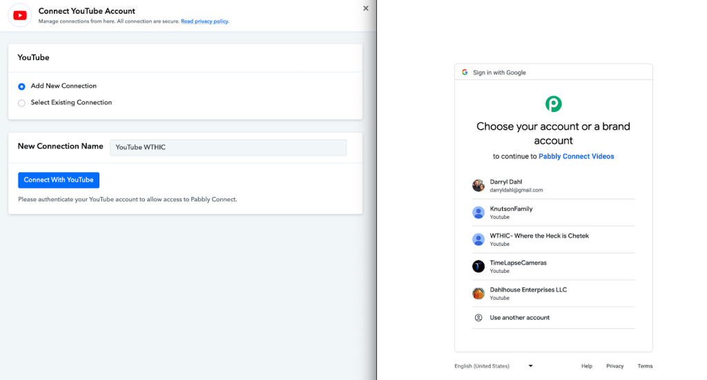 Connect your YouTube account by signing in. Choose which YouTube channel Pabbly should monitor. Click “Save and Send Test Request” to make sure Pabbly can access your videos. Pabbly will show you a recent video to confirm the connection works.